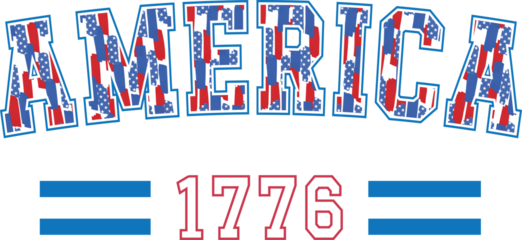 Illustration of 1776 with american flag and other symbols isolated on transparent background, representing the year of american independence
