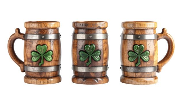 Two mugs of green beer on transparent background, St. Patrick's Day