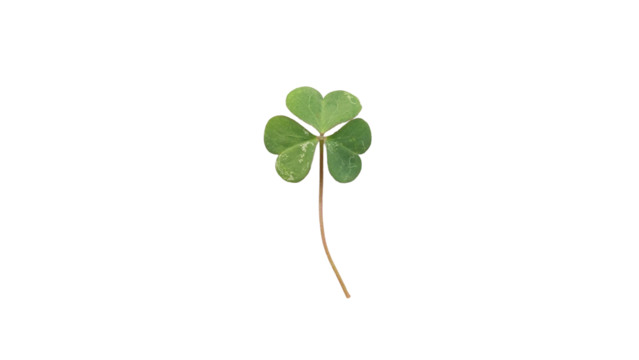 Isolated four-leaf clover, symbol of good luck, St Patrick's Day festive lucky shamrock