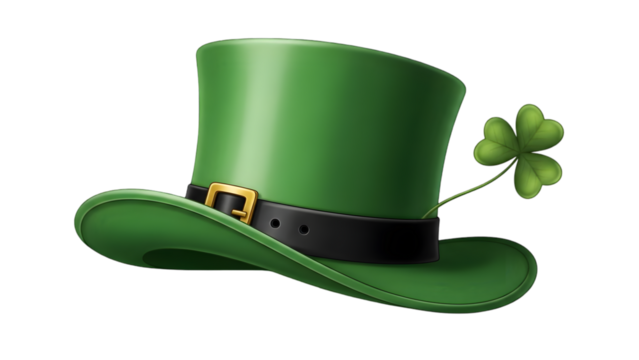 St patrick's day green top hat with shamrock isolated on transparent background