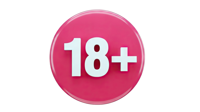 Stamp indicating age restriction for adult content, suitable for viewers aged 18 and up. Background is transparent