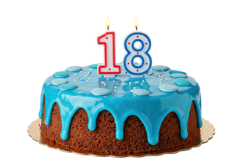 Isolated 18th Birthday Cake with Blue Icing and Candles for Celebration