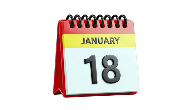January 18th Calendar on White Background