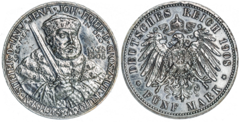 Deutsches Reich 5 Mark 1908 Universität Jena, Silbermünze