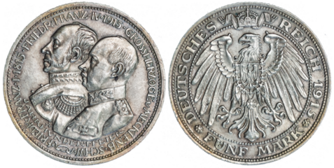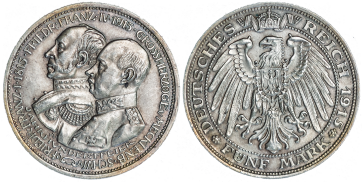 Großherzogtum Mecklenburg-Schwerin 5 Mark 1915 A 100-Jahrfeier, Silbermünzw