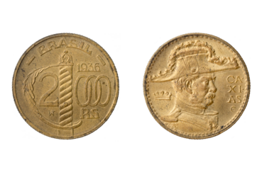 Brazilian silver coin of 2000 réis from 1936. Government of Getúlio Vargas. Sword and valor on reverse. Duque de Caxias, with cocked hat, Marshal Luiz Alves de Lima. Patron of the Brazilian Army.
