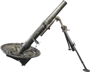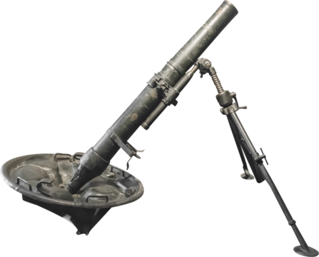Isolated PNG cutout of a 120mm mortar from World War Two 1943 on a transparent background, ideal for photobashing, matte-painting, concept art