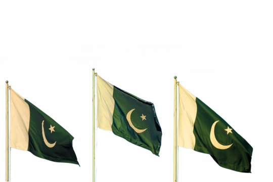 National flag of Pakistan on a flagpole in front of blue sky, Flag of Pakistan in the wind on the blue sky background, Black and white, 1947