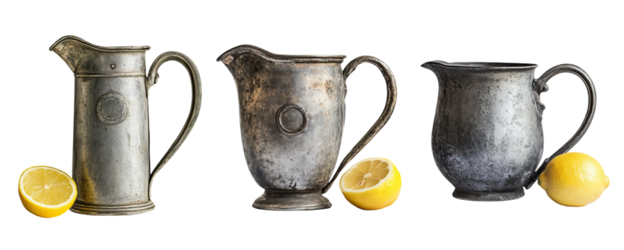 Vintage metal lemonade pitcher on white background
