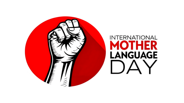 hand holding a red circle, cover photo design celebrate International Mother Language Day in Bangladesh.