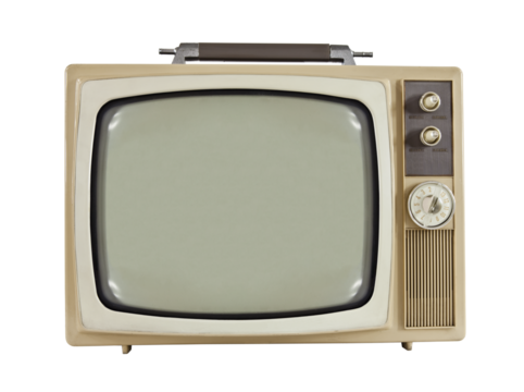 Vintage television with antenna for entertainment and broadcast concepts, showing retro style and media history, transparent background
