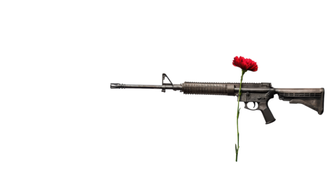 Carnation Revolution Symbolism with Flower and Rifle on Transparent Background