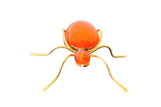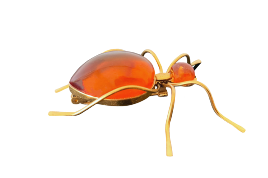 vintage brooch Ant with of amber and brass, made in USSR on isolated transparent background