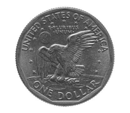 One dollar, coin isolated on white, clipping path