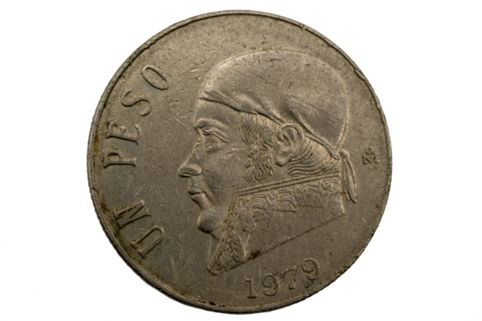 Moneda de un peso Mexicana con la imagen de José María Morelos y Pavón 1979