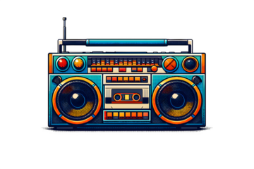Transparent background retro boombox with bright colors