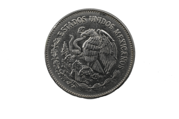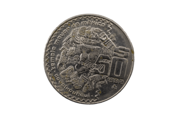Reverso de la moneda de 1982 de 50 pesos con la figura de Coyolxauhqui.