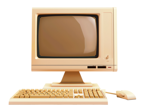 Generic vintage 90's style computer on transparent background. 3D illustration