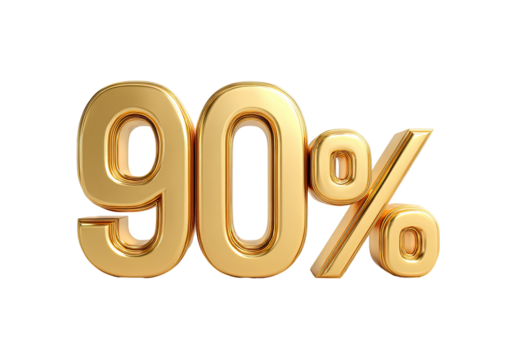 3D Gold Number 90 with Glossy Finish on transparent background