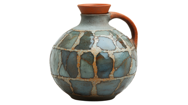 Classic Roman glass-inlaid pottery flask, Transparent background, PNG