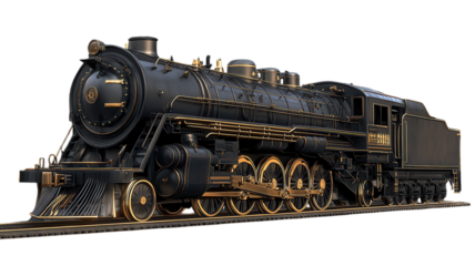 A classic steam locomotive showcasing vintage design and powerful features displayed against a transparent background.