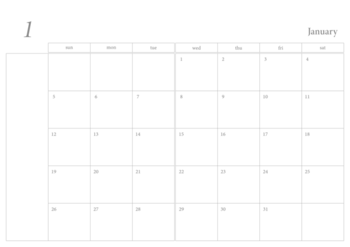 January calendar page on transparent background showing days and weeks