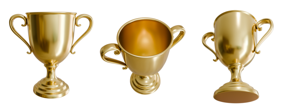 golden trophy cup with ornate handles, shining metallic surface, symbol of victory, isolated on white background