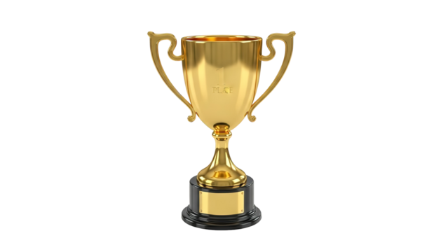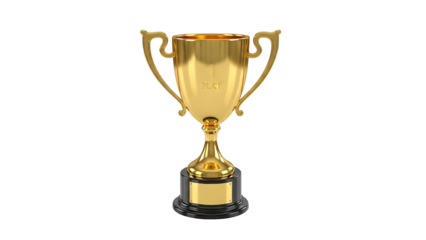 A shiny 3d golden trophy cup isolated on white represents the first place prize for a champion, symbolizing victory, success, and best achievement in a sport competition winning moment