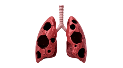 3 D Rendered Human Lungs with Multiple Cavities and Visible Damage transparent background. isolated on a transparent background