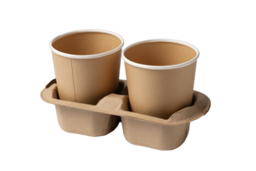 Two Paper Cups in Carrier Takeout Coffee Tea Beverages Sustainable Packaging Disposable Drink