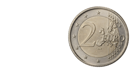 Close-up of a 2 Euro coin showcasing its intricate design and details with a neutral background for stock use