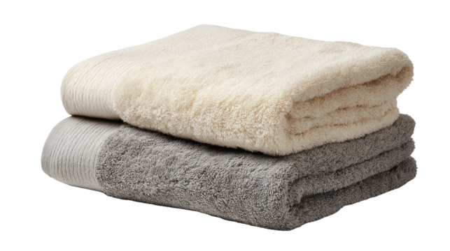 Two red christmas stockings with white cuffs hanging side by side on a white background png with transparency