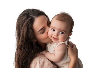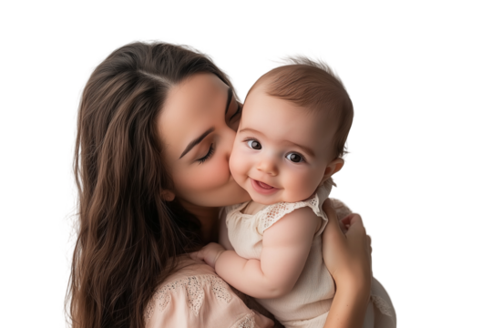 Happy caucasian girl hugging mother transparent background