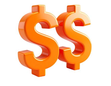 Two golden dollar coins isolated PNG on transparent background, currency and finance concept for business and investment