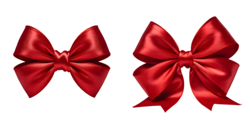 Two red shiny bows on transparent background for decoration