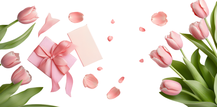 Happy Mother's Day vector set with pink tulip flowers, gift box and envelope on pastel background.  (2)