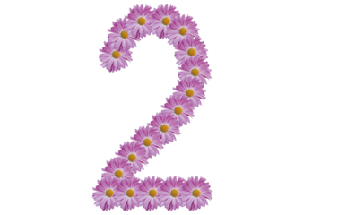 Number two made with pink flower isolated on white background. Spring concept idea.