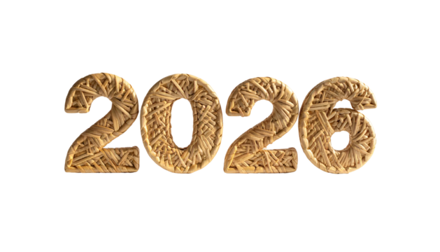Textured, golden-toned "2026" digits against a stark black background