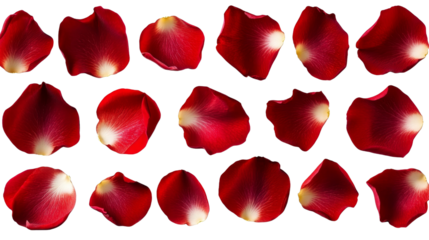 Collection of 20 Red Rose Petals Isolated on Transparent Background, Floral Design Elements, Valentine's Day, rose petals, red rose, valentines