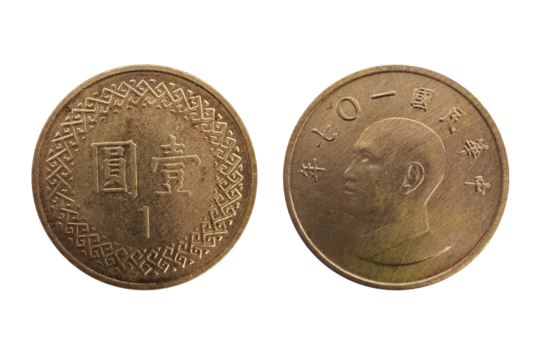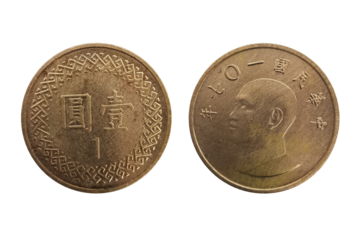 Taiwan 1 New Dollar 2001 coin, made of Copper-aluminium-nickel, Chiang Kai-shek bust left