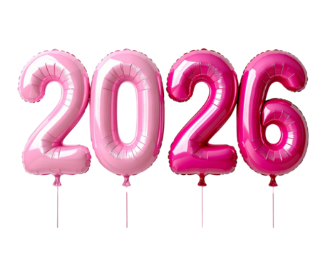 Festive Pink 2026 Balloon Numbers Collection for New Year Holiday isolated on transparent background