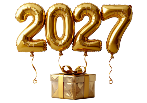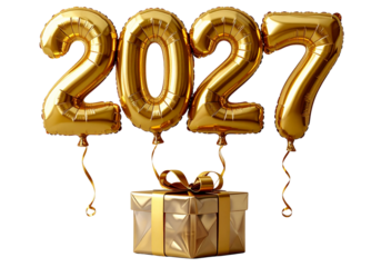 Luxury Gold 2027 Number Balloons with Present Box Transparent