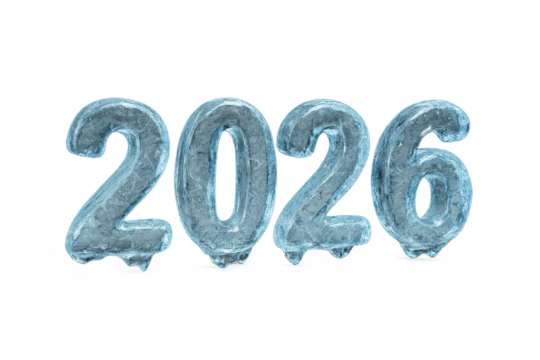 Frosty blue “2026” digits. Winter aesthetic