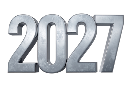 3D Silver 2027 Digits Floating, Modern Metallic Typography, Isolated PNG