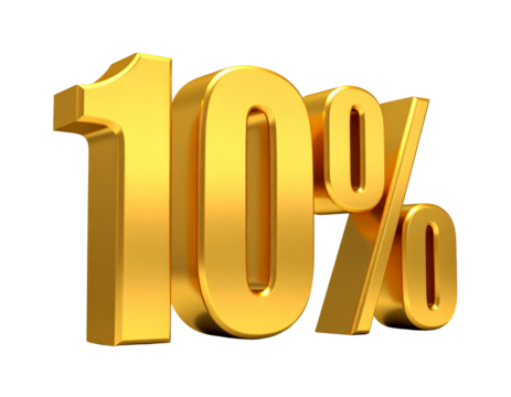 3D Golden ‘10%’ Symbol, isolated on white background PNG