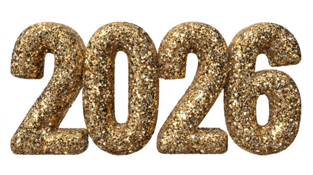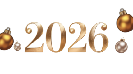 Golden New Year 2026 Celebration, isolated on transparent background