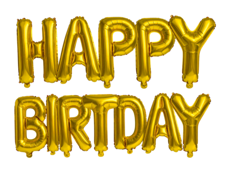 Block Letter Golden Balloon Text “Happy Birthday” with Soft Shadows, Isolated PNG