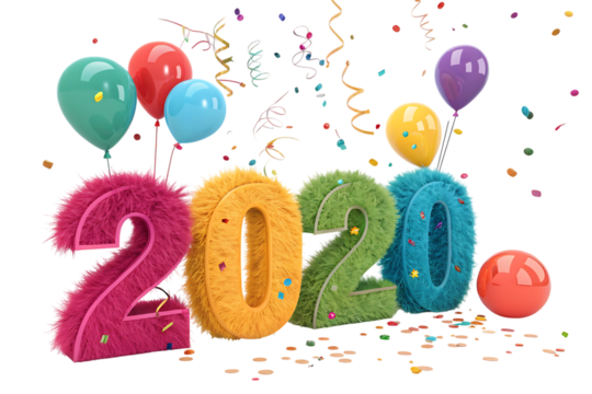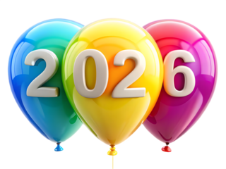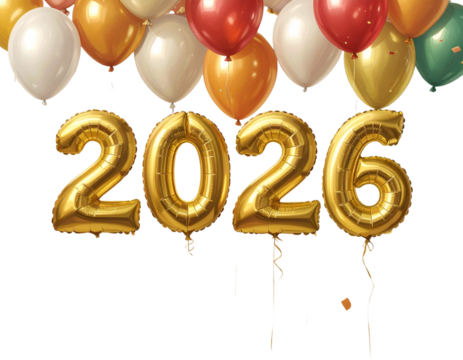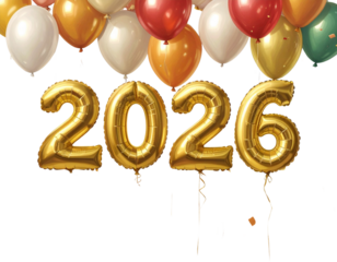 Colorful balloons with year isolated on a transparent background