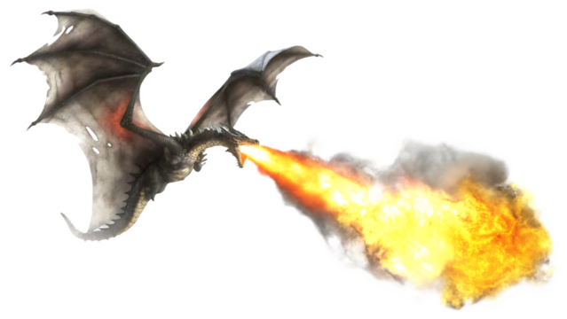 dragon fly and breathe fire isolated on white background, png, ai generated.