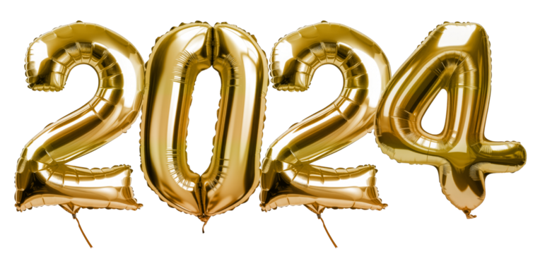 Happy new year Golden helium balloons 2024 on Transparent Background